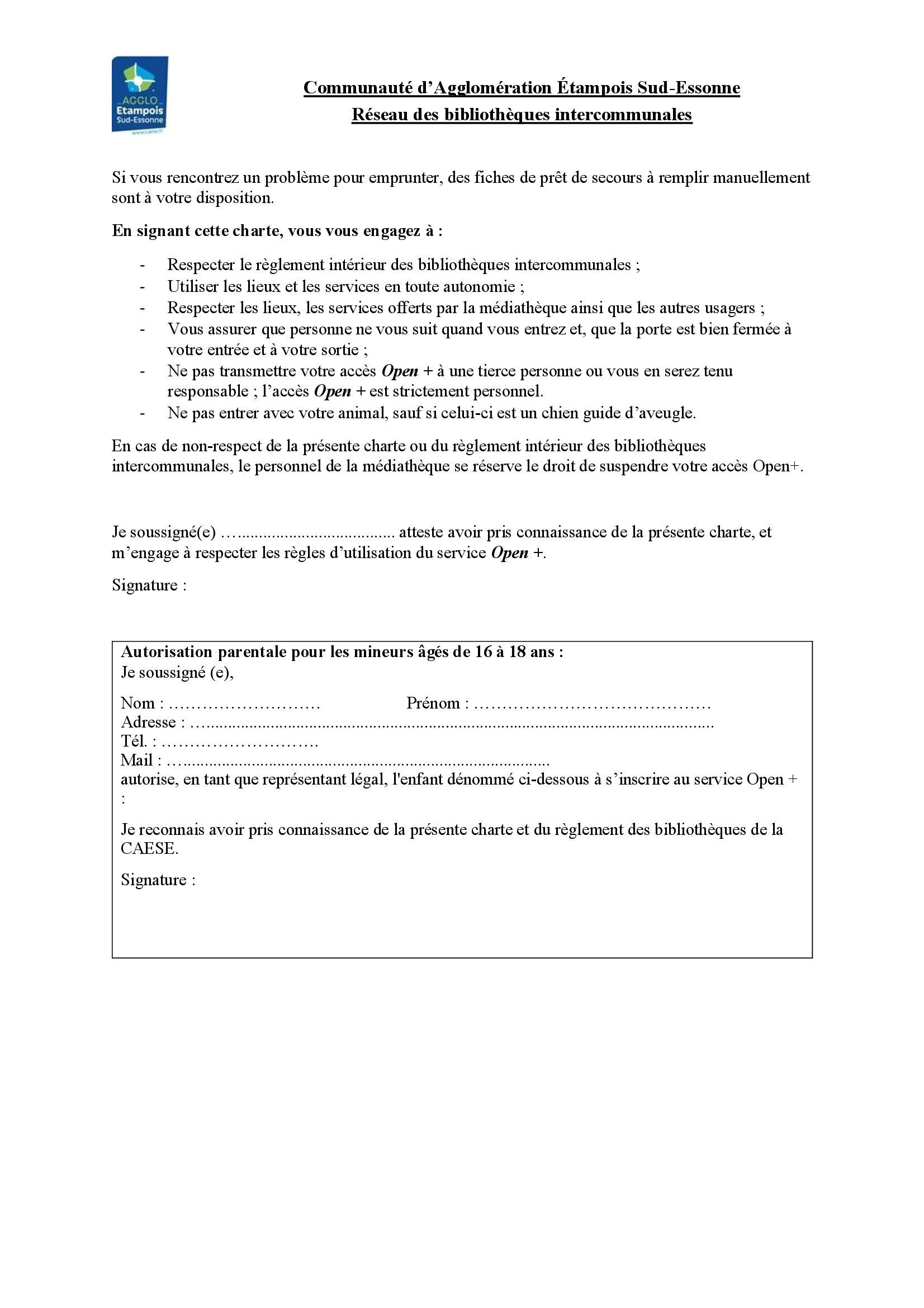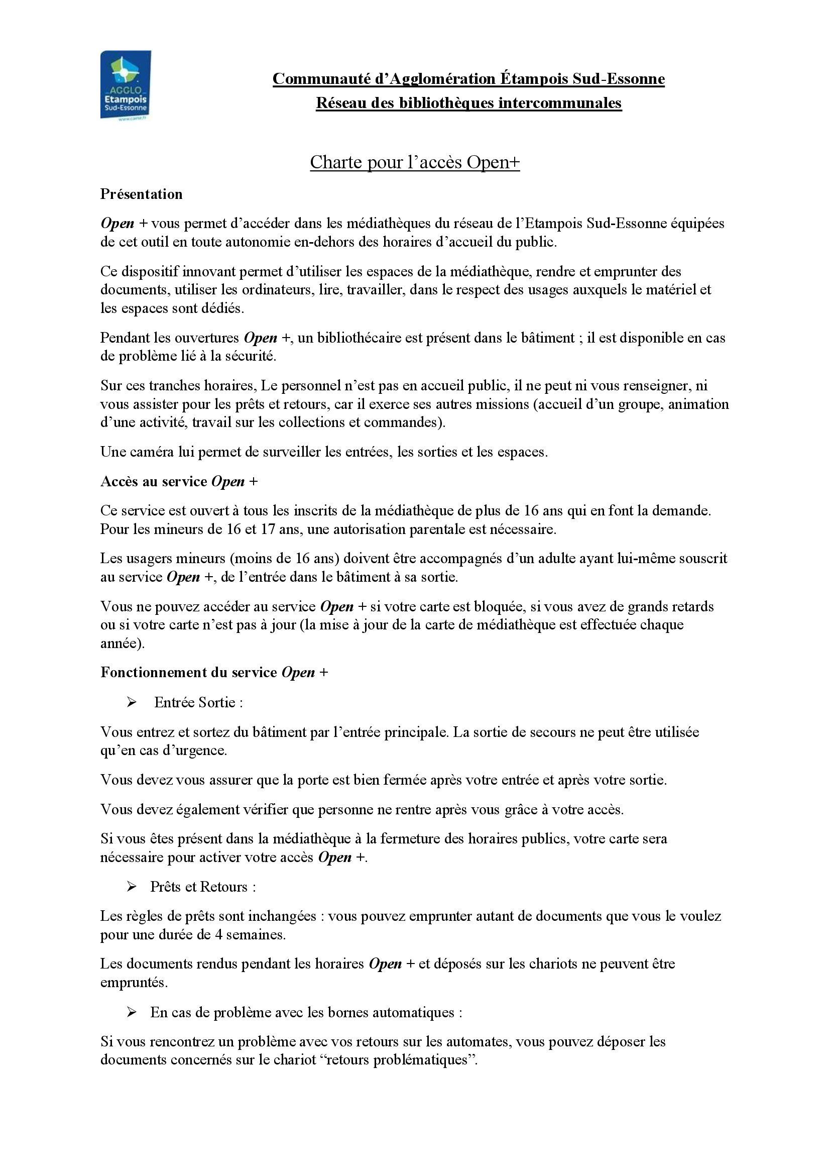 En cas de non-respect de la charte Open + ou du règlement intérieur des bibliothèques intercommunales, le personnel de la médiathèque se réserve le droit de suspendre votre accès Open+.